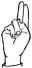 На ћирилици написано ЈАБУКА СЛОВИЋ састоји се из 12 слова [?]. Исписано ћириличном једноручном азбуком за глувонеме: